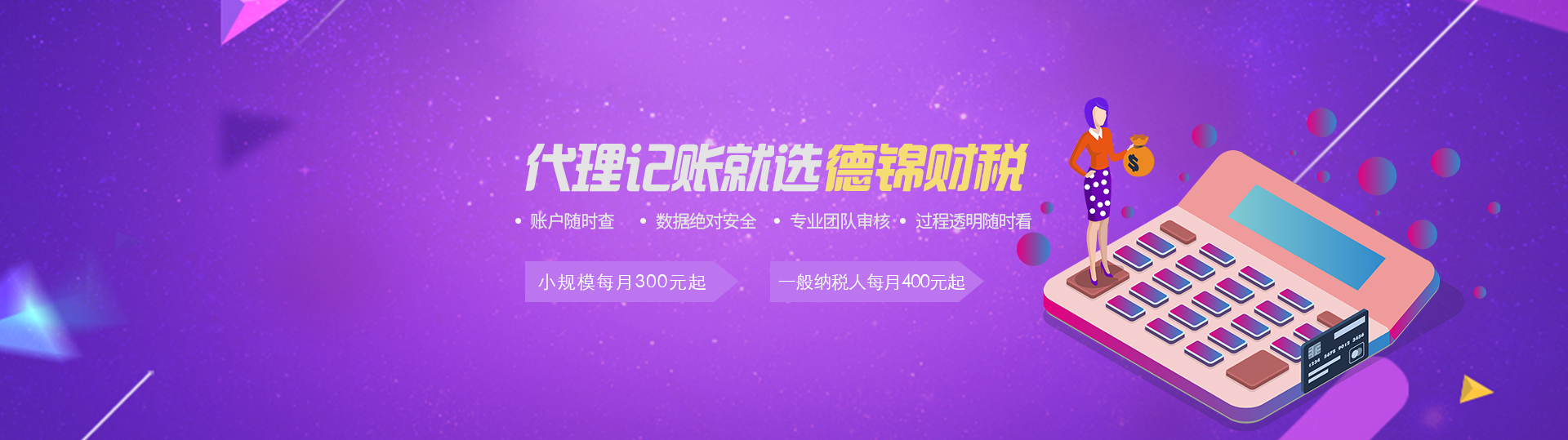 小规模300/月起 一般纳税人400/月起